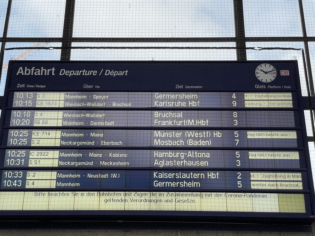 Am nächsten Morgen steht dann die vorläufig letzte Etappe nach Mainz an. Wir sind in Deutschland und ich bin auf alles vorbereitet. Die Bahn macht ihrem aktuellen Ruf alle Ehre, warum sollte es auch ausgerechnet jetzt besser werden? Der ICE nach Mainz fällt, mit schönem Gruß der letzten Verkehrsminister, schon am Vorabend aus. Es wurde ein Ersatz IC angekündigt, von dem am Morgen keine Rede mehr ist. Dafür sind noch mehr Züge gestrichen oder haben ordentlich Verspätung oder fahren aus Protest einfach rückwärts.