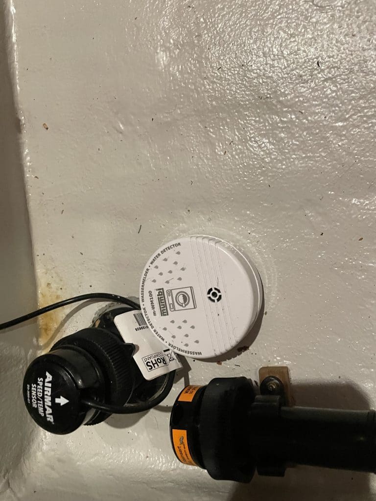 Ein durchdringender Alarm lässt uns kurz nach Mitternacht in der ersten Nacht der Überfahrt aufschrecken. Erst kann ich den Ton gar nicht zuordnen, er kommt immerhin extrem selten, aber Filip erkennt ihn schnell. Es ist der Wasseralarm aus dem Vorschiff, der anzeigt, wenn wir dort Wasser in der Bilge haben, welches bei einer Sirius da auf keinen Fall hingehört! Na, der passt ja perfekt auf dieser Überfahrt, die schon reichlich holprig anfing: