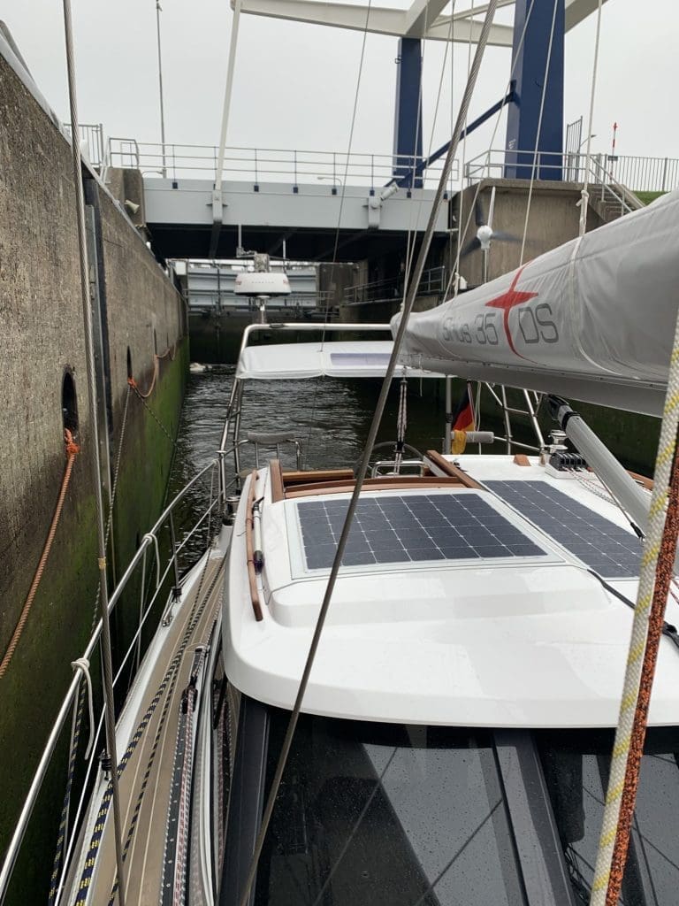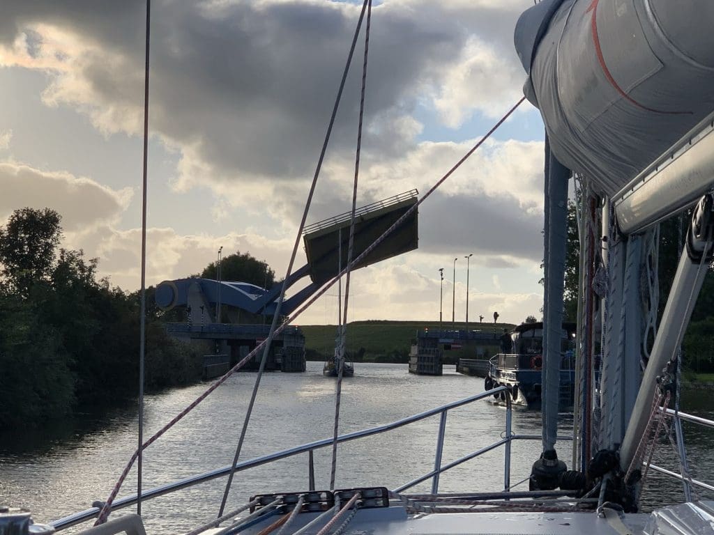 Es handelte sich um eine Kombination aus Brücke und Schleuse. Die Brücken und Schleusen kann man anrufen und anfunken, das war aber nicht einmal auf der Route nötig.