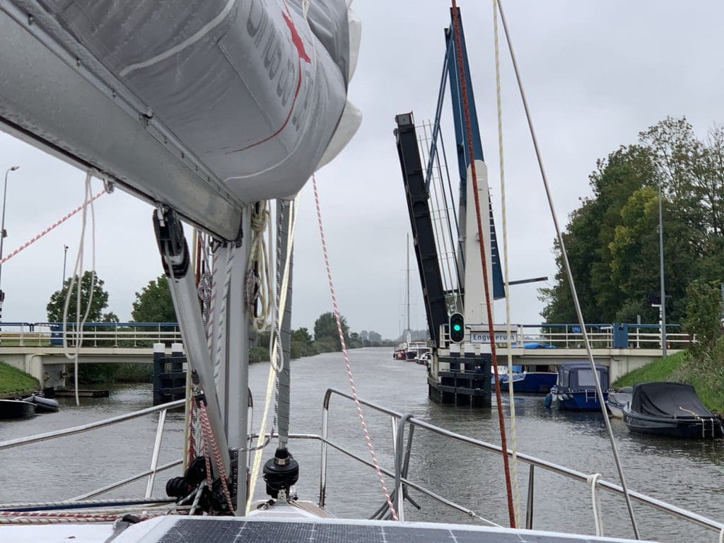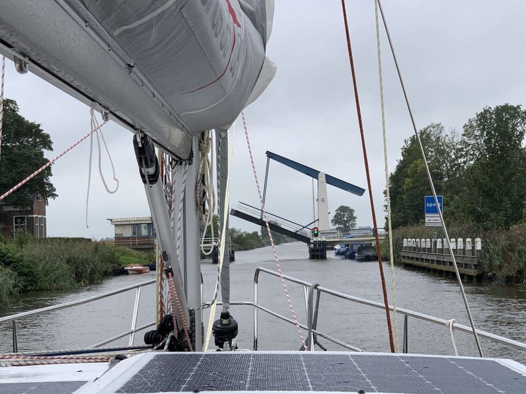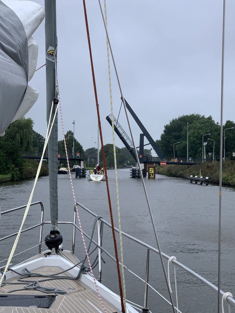 Ich war tatsächlich darauf vorbereitet, nur bis nach Leeuwarden zu kommen. Ich hatte mir rausgeschrieben, dass die Brücken vor und in Leeuwarden bis 16 Uhr in Betrieb sein werden und das hatte ich nicht geschafft. Es gibt eine Geschwindigkeitsbegrenzung bis dahin, sodass es auch schwierig war, die Dinge erzwingen zu wollen. Es stellte sich aber heraus, dass die eine weitere Schicht von 1800 bis 2100 machen würden. Das hatte ich nur bei der letzten Brücke in dieser Stadt so gesehen und niedergeschrieben. Super!