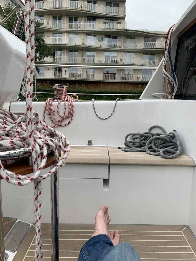 Also machte ich mich mal dran, mich ein bisschen auf Vordermann zu bringen. Ich wechselte meine komplette Garderobe und hielt erst mal die Füße in den Wind. Mittlerweile hatte der Regen aufgehört und es wurde noch mal geradezu schön.