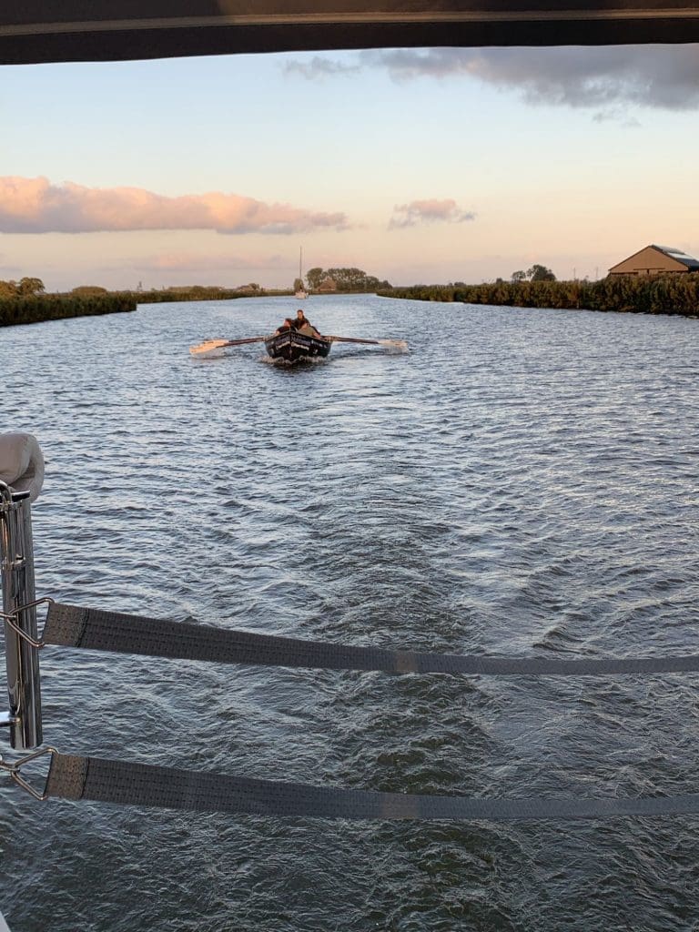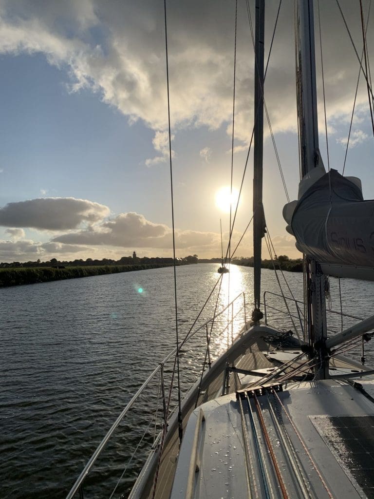 Und die Jungs waren schnell! Als unser Seglerpulk an einer Brücke warten musste, sind die natürlich auf und davon und wir haben die später wieder eingeholt. So ging das eine Zeit.