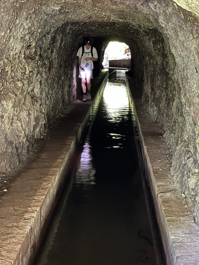 Als Kontrastprogramm mach wir zum vielen Herumsitzen auf dem Clipper in See eine schöne Wanderung, die uns durch die Wälder und meistens entlang von gurgelnden Wasserläufen führt, für die auch schon mal ein Tunnel gebaut wurde.
