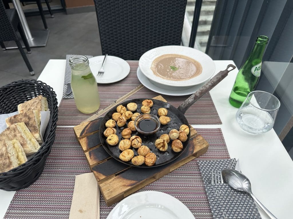 Zum Abschluss geht es noch mal in das Esskastanien-Dorf, wo es vom Bier bis zur Suppe alles aus Maronen gibt.