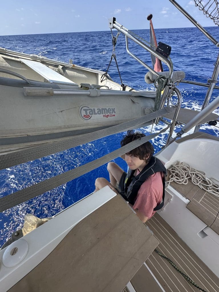 1,5 Stunden müssen wir den Clipper noch im Windschatten der Insel mit dem Motor schieben, bis wir die Segel setzen können. Zunächst haben wir schöne 13–15 Knoten von der Seite und machen tolle 7 Knoten. Ich nehme zeitweise sogar die kleine Arbeitsfock und muss dabei den nächsten Schaden feststellen.