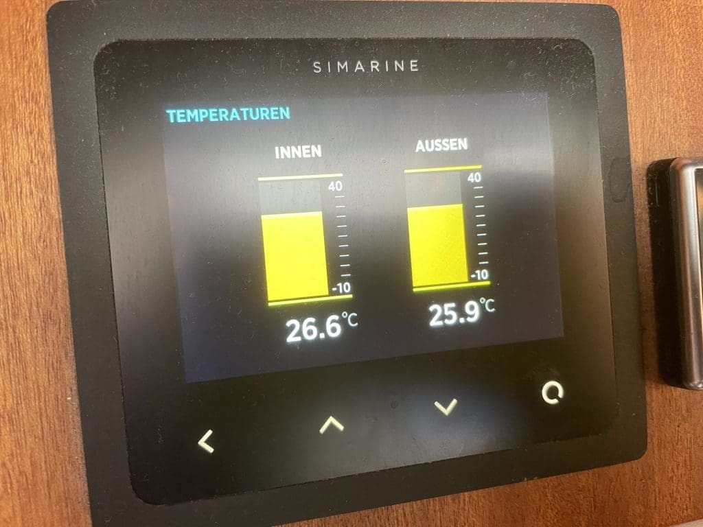 Die nächste Errungenschaft sind dann auch zwei neue Thermostate, eines außen und eines innen, die ihre Erkenntnisse zur Temperatur freizügig zunächst an das Multifunktionsdisplay Pico von Simarine weiter geben. Letzteres ist Standard auf einer Sirius 35. Was nicht Standard ist, ist, dass die dort anliegenden Daten, vorwiegend Informationen zu Tankfüll- und Batterieladezuständen, nun ebenfalls dem NMEA Netzwerk zur Verfügung gestellt werden. Hier kommt also das zweite Gateway zum Einsatz. Gerade die Außentemperatur hatte ich bislang nicht, was aber häufig sehr interessant gewesen wäre. All das geht nun auch auf den Backbone, von wo aus es zentral wider ausgelesen werden kann.