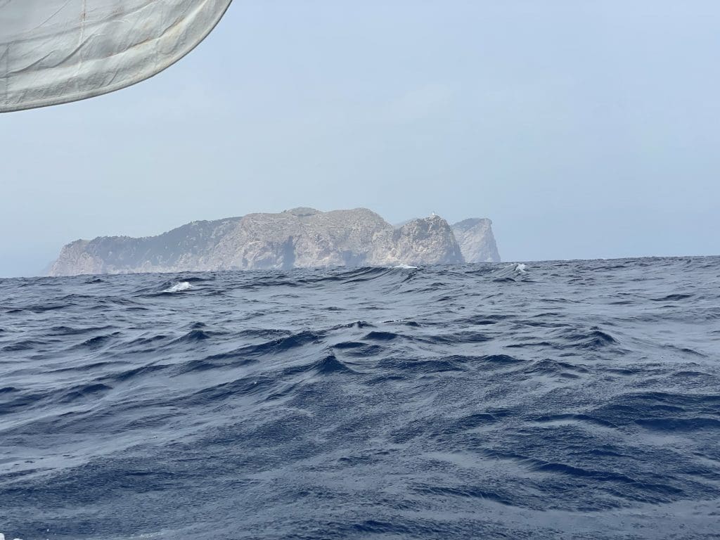 Am Morgen kreuzen wir fleißig in den Canal de Menorca hinein, runden erst kurz vor 13 Uhr das schroff aus dem Meer aufsteigende Cap de Formentor, welches sich spät aus dem Dunst hervor schält. Ist das Kap nicht auch der IAF (initial approach fix) für den Anflug auf den Flughafen hier?