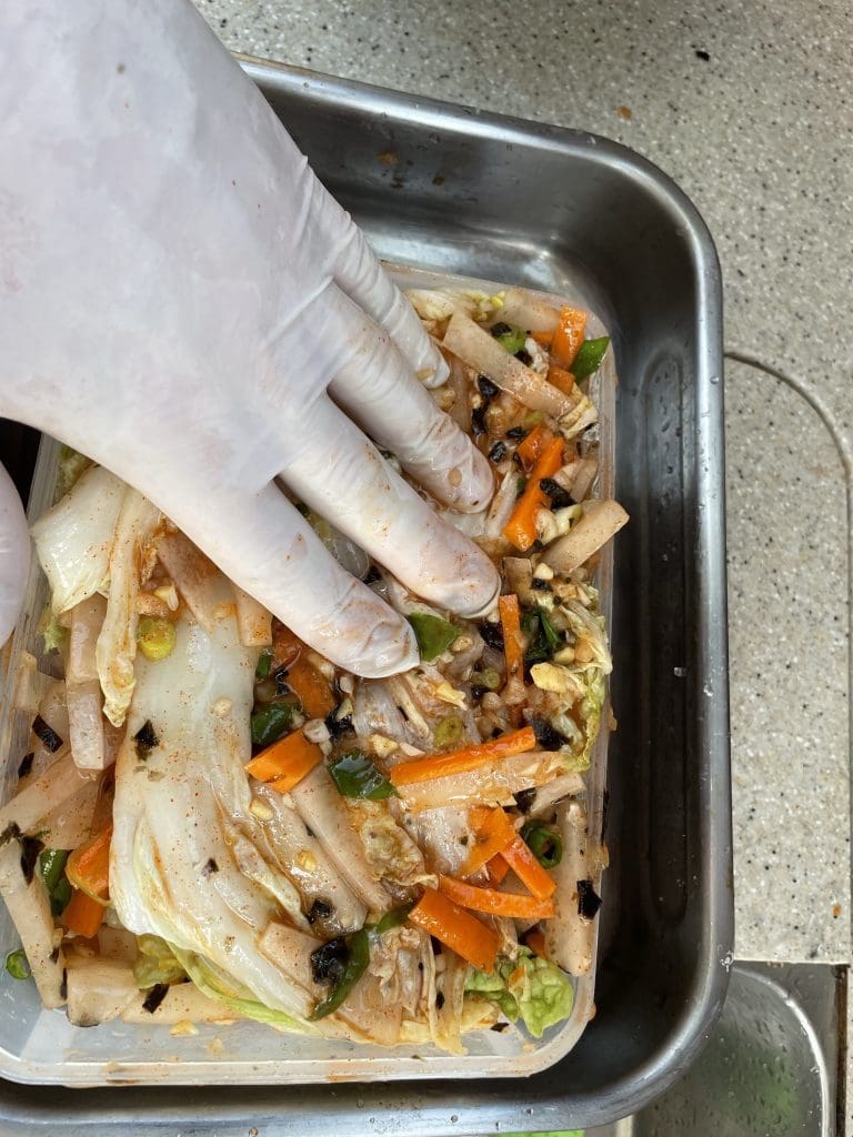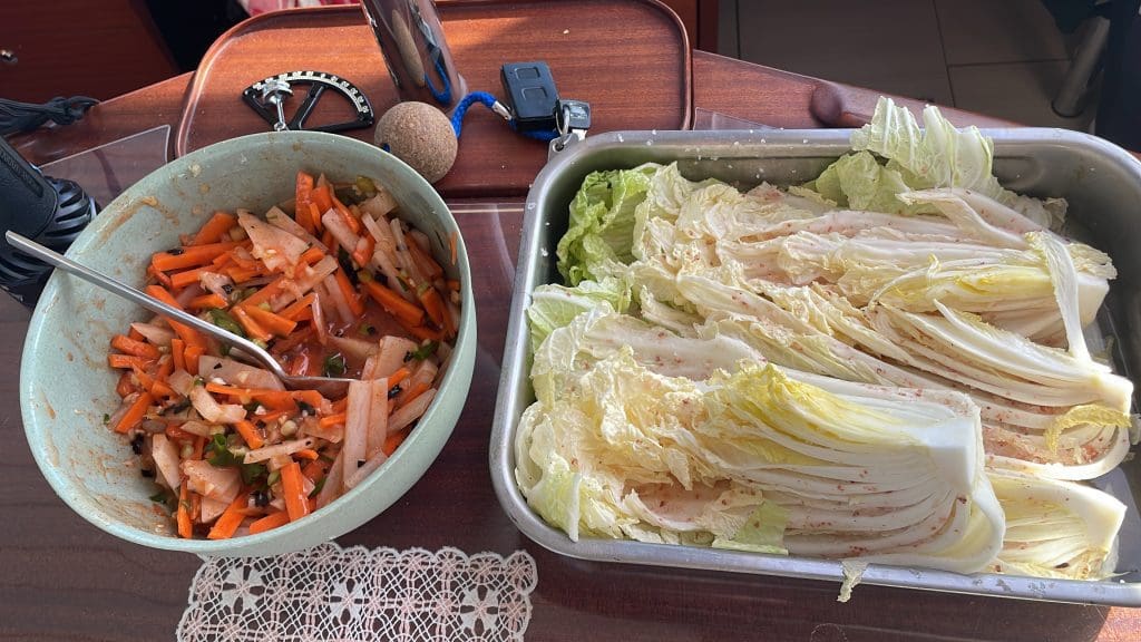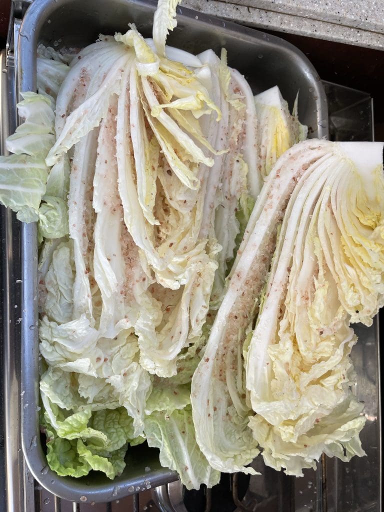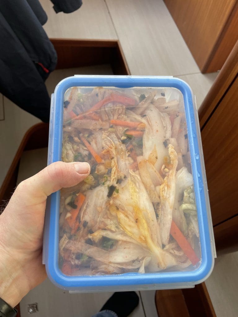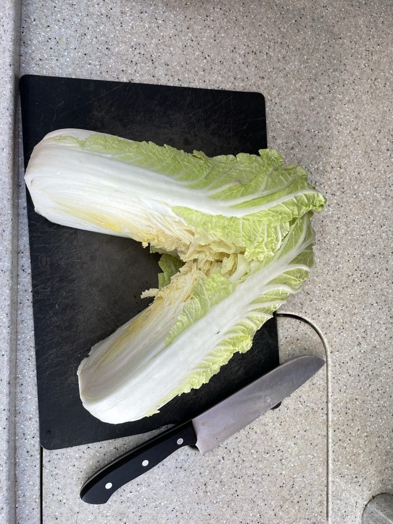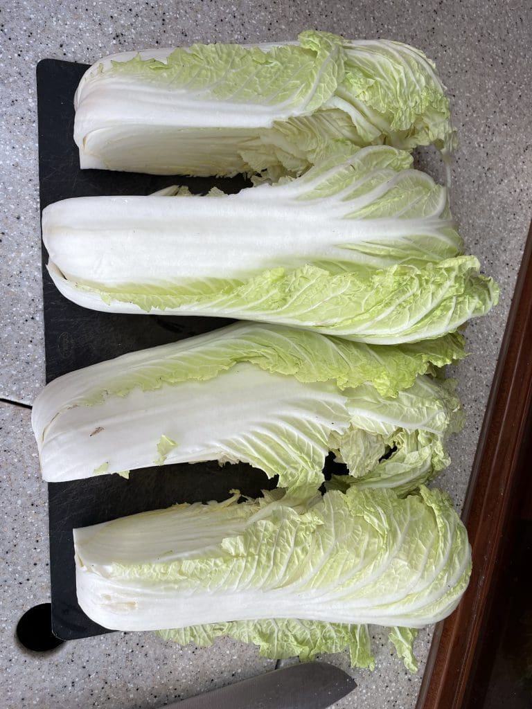 Zur Feier der Befreiung mache ich mich daran, mein erstes Kimchi vorzubereiten. Das ist fermentierter Chinakohl und unglaublich lecker und gesund. Nun meine neue Leidenschaft.