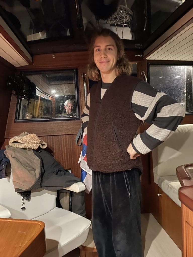 Wir beginnen gegen mehr als 20 Knoten Wind aufzukreuzen, der, genau wie vorhergesagt, aus der Richtung kommt, wo wir hin wollen. Wie immer ist nicht der Wind, sondern die See das Problem. Es steht eine unangenehm kurze, konfuse und manchmal recht steile 2–3 Meter Welle, die sich auf dem kurzen Weg von Andalusien bis hierher aufbauen konnte. Nach einer Stunde überantwortet Filip sein Frühstück der See. Auch ich fühle mich nicht mehr wirklich frisch. Hätte man alles vorhersehen können. Haben wir aber nicht und müssen nach der Weihnachtspause erst wieder lernen, was geht und was man einfach nicht versuchen sollte. Es war einfach ein Fehler heute in die Richtung rauszufahren und gegen diese Wellen anzubolzen, anstatt den Tag vor Anker zu genießen. A Gentleman Never Sails to Windward!